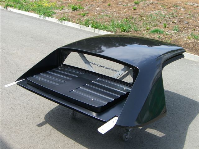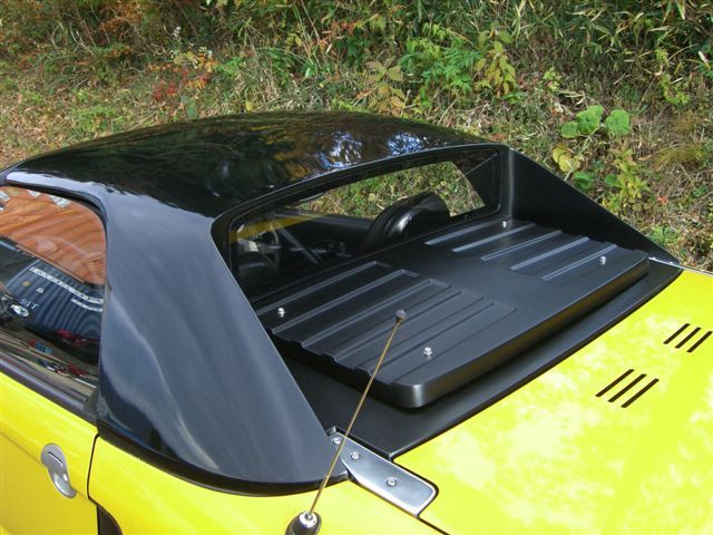 軽量化とボディー剛性を改善するために最適ですリアの視界も良好です整備性のためエンジンフード部の蓋は脱着できるようになっています取り付けは純正ソフトトップを外し、バックルの部品だけ移植します